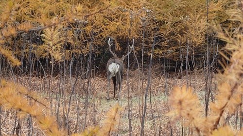 黄色く色付くそれは知床の晩秋らしい景色です。