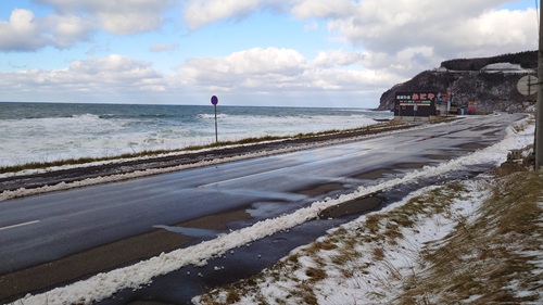ウトロは氷点下3.3度まで気温は下がり、路面は凍ってツルツルに。