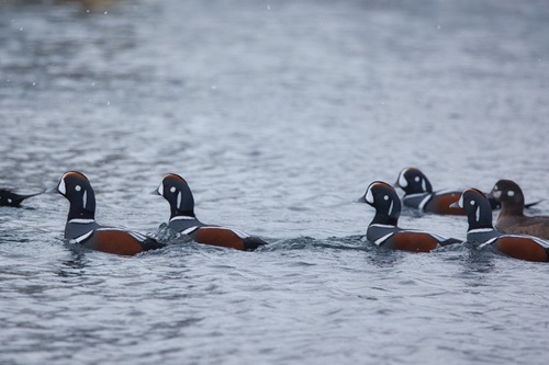 羅臼港に集合し港を出発するとたくさんのシノリガモがお出迎え