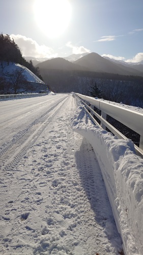 歩道を除雪したことによって、欄干にもたれてた雪が歩道側に倒れかけて…