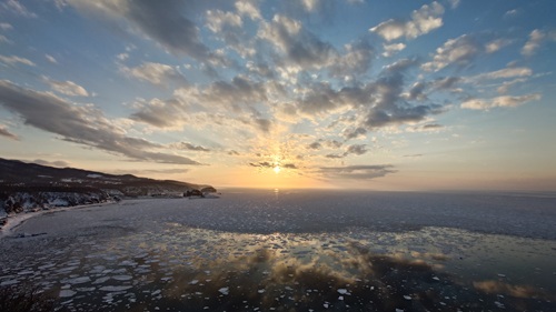 流氷が海面を覆い、がっちりと固まる前の景色です。