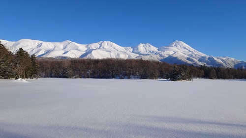 本来、この時期は上の写真のような真っ白な雪原を楽しめるはずなのですが…