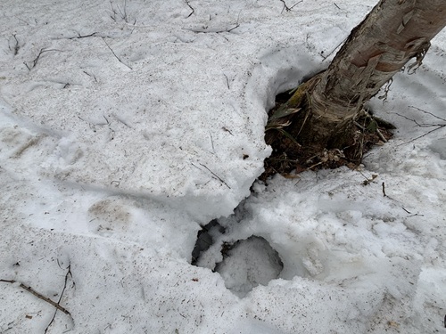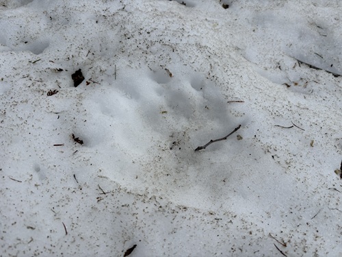 冬眠から明けたヒグマの足跡も雪の上に残っており