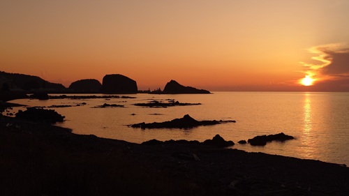 この時期は海へと沈む夕陽が見られますが、冬は流氷に沈む夕陽。