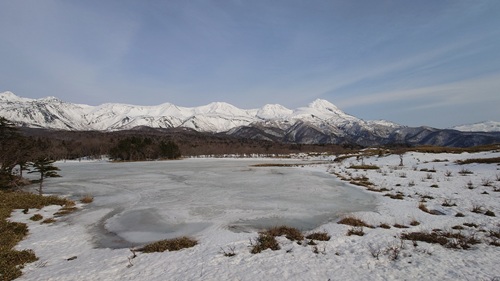 知床連山は雪景色。そして森の中もまだ雪景色。