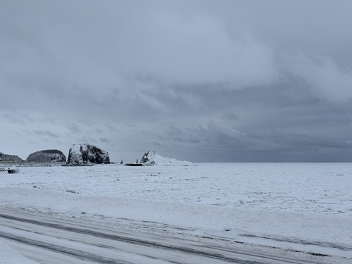 2026年1月31日の流氷 <ウトロからの流氷>流氷を確認することが出来ます。 <流氷の状況>流氷に大きな動きはありません。高台から見ると沖合には海面の見える箇所があります。明日も大きな動きはなさそうです。 知床ネイチャーオフィス