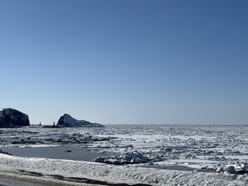 2026年2月20日の流氷 <ウトロからの流氷>流氷を確認することが出来ます。 <流氷の状況>昨日の午後に流氷は再接岸しました。現在のところ大きな動きはありませんが沖合には大きな割れ目が目立ちます。 本日の夜から南風が吹く予報となっております。夜のうちに流氷は沖に多少離れてしまう可能性が高いです。