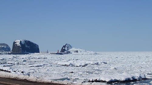 2026年3月25日の流氷 <ウトロからの流氷>流氷を確認できます。 <流氷の状況>弊社からは水平線付近まで流氷を確認できます。今後は氷点下になる日はほぼ無い予報となっています。どんどん融けたり、沖へ流れたりで流氷は少なくなるでしょう。 知床ネイチャーオフィス